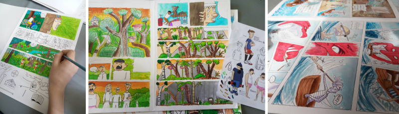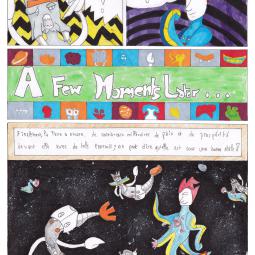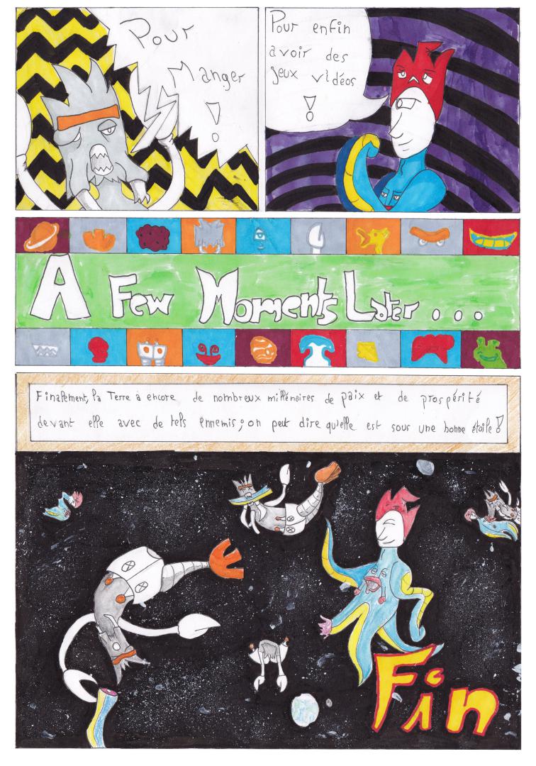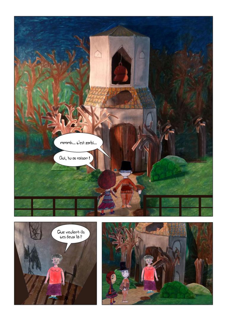 Inès et Théophile ont travaillé de concert sur ce projet BD, réalisé également par mélange de 3D pour les décors et 2D pour les personnages.