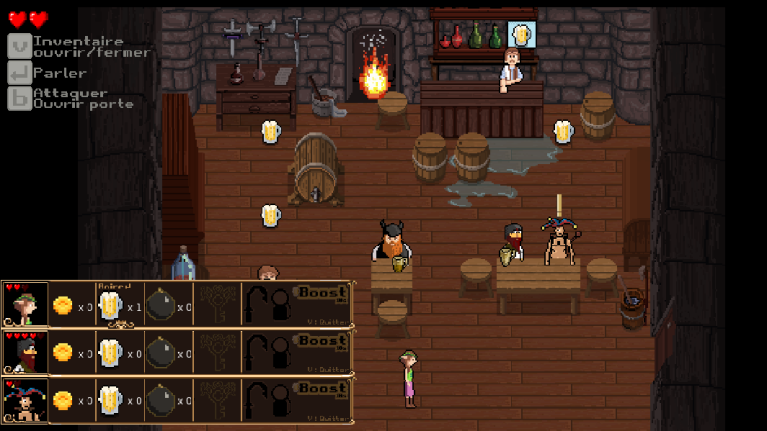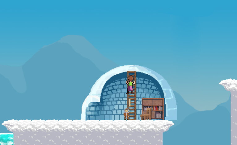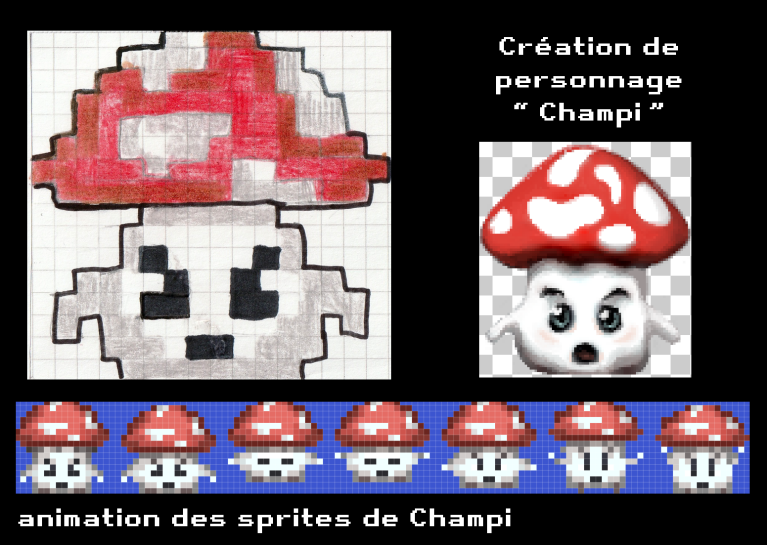 Les élèves réalisent ensuite tout le design graphique de l'univers : décors / personnages / objets en prenant compte des contraintes liées au pixel art.